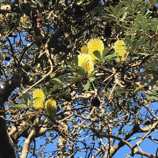 見た目似てるけど、これがボトルブラシで、黄色のは初めからドライフラワーみたいな花(?)コーストバンクシアと言います