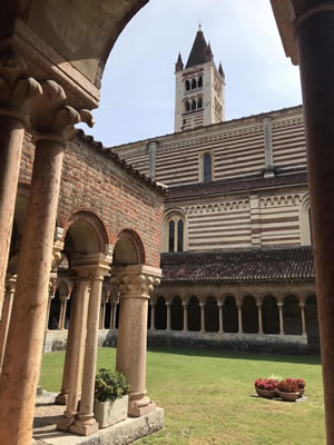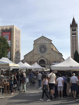 ヴェローナのサンゼーノ聖堂は、有名なベネディクト会修道院の隣にあって、その前の広場でフリーマーケットが開催されています。