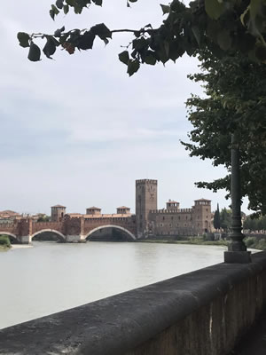 今回ラストの写真は、サンゼーノ聖堂の裏を流れているアディジェ川。スイス国境に近いアルプスに源を発しアドリア海に注いでいるイタリアで二番目に長い川。写真の中央に見える、一見建物のようなものは、アディジェ川にかかるカステルヴェッキオ橋です。