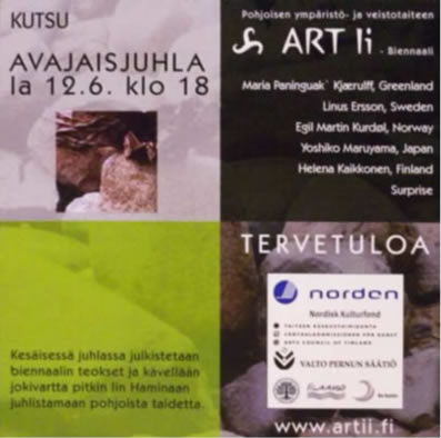 「ART Ii Biennale 2010」には、Maria Pan=nguak` Kj=rulff(グリーンランド)、Egil Martin Kurd=l(ノルウェー)、Linus Ersson(スウェーデン)、Lars Vilks(スウェーデン)、Helena Kaikkonen(地元Iiからの参加)、丸山芳子(日本)の、合計6人のアーティストが招待された。