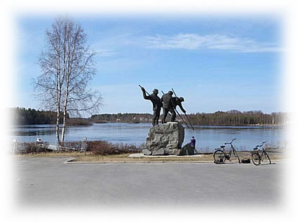 街を創立した英雄3人のブロンズ像が川のほとりに立っていた。