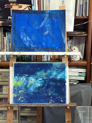 そこで、インスタレーションのテーマ「地の脈」にちなんで、地球を俯瞰するようなイメージの古〜い作品も加えて振り返ってみようかなと、選んでいるところ。