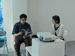(丸山芳子)開催中の個展会場で「作品集出版記念トーク」を行いました。