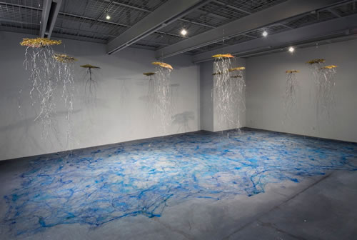広大なフロア1Fに展示したインスタレーション、2Fの絵画作品、どちらも好評をいただいております。 最終日は16時までです。お間違えのないように、お立寄りくださいね。