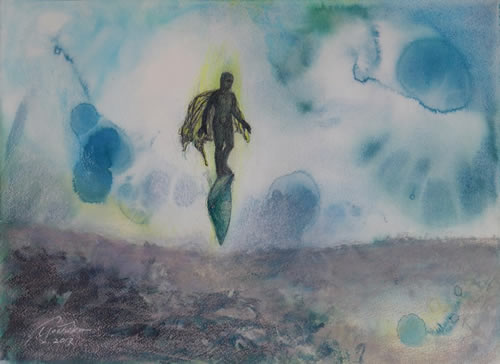 【2018/1/11】 作品紹介 「出現 / 夜明け」2017 紙にアクリル・パステル・インク、40x55cm [Dawn] 2017