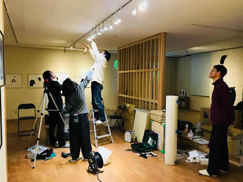 acrylic color, ink, pastel on paper 【2018/1/15】 設営中 精神の〈北〉へ vol.8 ギャラリーオフグリッドの設営を、今日から開始している。