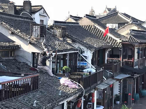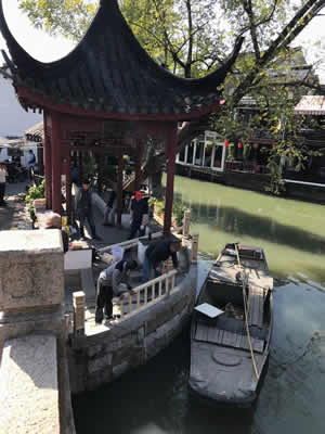 会場の芸術館は、上海を訪れる各国首脳夫人の訪問が予定されているからなおのこと。 館では、館内カメラを新調し、壁を塗り替えたらしい。 そこに、外国人で、インスタレーション作品など、何をやらかすか、館にとって不安材料に違いない。 私は中国語がわからないし、英語で話しても通じにくい。 様子を見に来る女性館長には、できるだけの語彙でプランを説明する。 竹の枝の作業中に、剪定ハサミで指先を切り込んでしまったら、館長もスタッフも守衛さんも、色々な手当て物を持ち寄ってくれて、急に距離が縮まった感じがした。