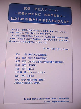 3.11の直後には、これからは東京でも住民の助け合い関係が必要だな…と感じ、近所とも東北を見てきた話などしていたものの、だんだん挨拶程度になっていた。 昨今、近隣とのおつきあいが広がった結果、「板橋区の文化人親睦会」も生まれて、こんなにスペシャリストが住んでいたのかとびっくりするほどの多分野の専門家ともお知り合いに。 ご近所や地元が、住民の声が生かされ、交流の生まれる街になれば、もっと生きやすい地域になるだろう。 【2019/4/17】 支援決定 今年の「精神の〈北〉へ」活動が、ポーラ美術振興財団よりご支援いただくことになり、ようやく日本からのアーティストたちがフィンランドへ飛ぶことができる! 同じ頂き方でも、このように華々しい場で財団理事長から直接目録を手渡され握手すると、「この支援が良い活動に生かされることを託されたのだ」という気持ちになる。 昨今は助成金をいただくのはとても難しくなったので、久々のまとまったご支援は本当にうれしい!「フィンランドの東北」とも言えるラップランドで、私たちは何を感じ取り、共鳴させるだろう?この結果は、日本のどこかで報告展をしたい。