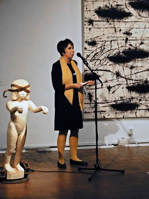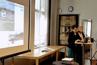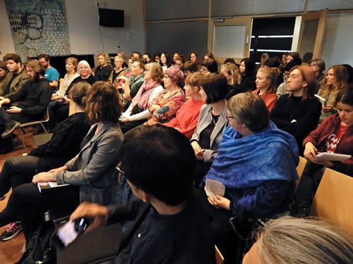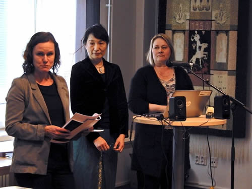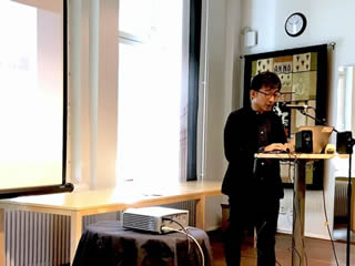 これまでの福島での活動と、フィンランドがどんなにこの プロジェクトと関わりを持つかを紹介。 福島での滞在活動を共にした二人が、東北とラップランドへの理解を深めようと、互いに質問する。 <<Seminar 20 Sep.>> 始まったばかりの展覧会作品を引用しつつ、様々な比較を 論じて見せた講演。ぜひ日本語でじっくり聴きたい。