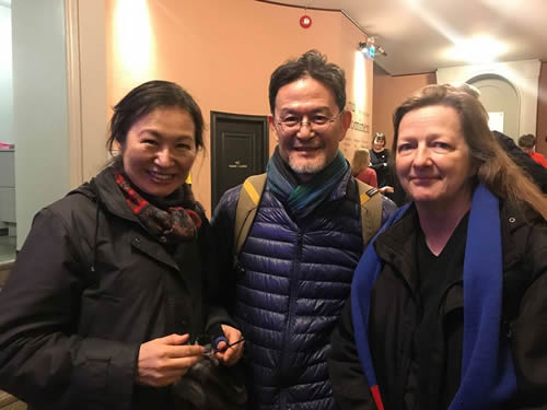 帰り際、偶然作家本人と対面し、挨拶。他の観客は気づかなかったようでラッキーな出会いでした。 (※写真撮影は丸山常生氏(右の背景写真も)。最後の写真のみヘレナ・ユンティラさんが撮影。) 【2020/2/3】 帰国
