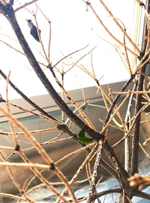 上の方にいるのは、羽化できなかったクロアゲハのサナギ。