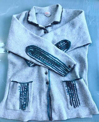 ところで、私がリフォームしたカーディガンを背面から見ると、肘の刺繍しかなく、そこだけ目立って唐突だなあ・・・と感じたので、ささやか背守りをつけてみた。 これで、病や感染から私を守ってもらおう! このカーディガン、ますます存在意義が増してきた。