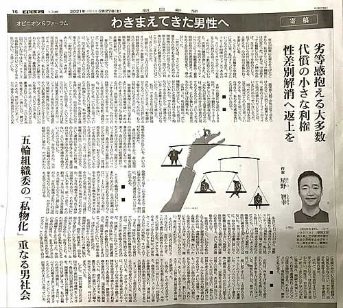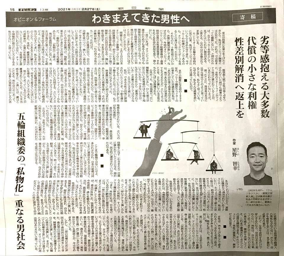 朝日新聞「わきまえてきた男性へ」星野智幸さん(作家)の寄稿から転載: