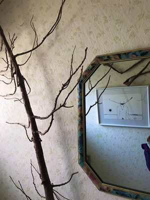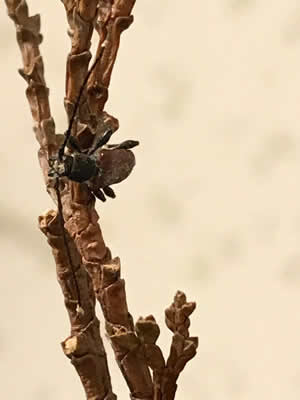 【2021/3/6】 啓蟄 トイレの中のインテリア代わりに、庭木の剪定で手に入れたイチイの枝と、藤蔓(これは会津での滞在でもらったもの)を壁につけて、リラックスできる空間つくりをしている。 昨日、そのイチイの枝に小さな黒い虫がとまっているのを見つけた。近くに穴があったので、ここから出たか?と推察した。 夜になって、枝にもう1匹発見!それなら・・・とあちこち見渡したら、床にも1匹いた! 昨日は、春を迎えて虫が這い出る「啓蟄」。3匹そろって暦通りに這い出すとは、なんて正確な虫たちなの!! それも、この枝は私が正月明けの庭木剪定をした時、つまり2ヶ月前から屋内に取り込んでいるのに、季節をどうやって知ったのだろう?? たまたま観察できる場にあったからこそ、印象に残る「啓蟄」を実感する幸運な1日になった。 この虫は、一体なんでしょう? (同日に剪定して、葉を取り去ったからわからないけれど、枝は、イチイか、もしくはヒバかも?)