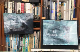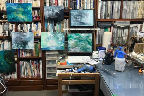 東日本大震災のときに、ほとんどの本が床に落ちたのに懲りて、枠ごとにひもをつけた。 複数の絵を同時進行で描くとき、あ、このひもに絵が吊れる!と気づいて、こうなった。 スコットランドのアーティストSu Griersonさんとの日英協働プロジェクトのスタートとして、6月からスコットランドで交流展が始まる。 両方の国の開催が連携するかたちで、11月まで5つの開催が続く。 もう仕上げて送らないといけないのに、昨日まで日本展の資金作りに申請書を書いていて、自分の絵は出来てなーい!!!😱 シリーズ 「生まれた星に還る / Return to the Home Planet」