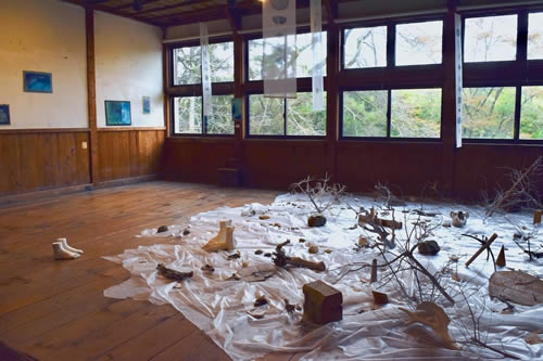 【2022/2/16】 きこえるかい? 2 / Can You Hear Me? 2 会場は元中学校の校舎。 教室の窓をとおして、光や風や屋外の森の生き物の生息が感じられる。 それらがみんな作品の要素となる。