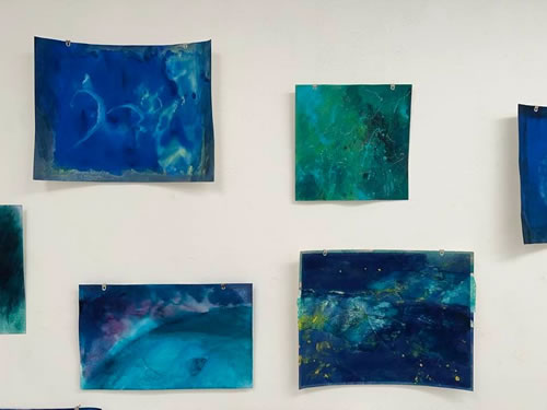 紙にアクリル、転写