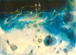 紙にアクリル、パステル、インク