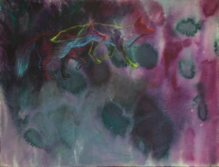 acrylic color, pastel, ink on paper