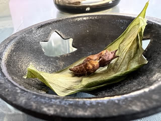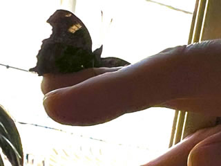 前蛹になっていたルリタテハは翌日、次のステージのサナギになろうと、さかさまにぶらさがったまま、毛むくじゃらの皮を脱ぎはじめた。 尻尾のところに寄せた皮を脱ぎ捨てようとするが、皮がなかなか落ちない。はげしく身悶えした。 あまりにも激しく体を振りすぎたサナギは、なんと脱いだ皮ではなく自分の方が落下。なんてこった!(ちょっと笑えた) ひょうきんというか間抜けというか。どうするんだい?! 茎には毛むくじゃらの丸まった皮だけが残った。。。 転落サナギは、まだ脱皮したてのやわらかい体で頭から落ちた。その上、正常なら頭を下にしたサナギの中で蝶の体をつくっていくのに、横たわっているしかない。 このまま死なずに、数日間かけて蝶になってくれないだろうか。。。かすかな望みをいだいて、転落サナギを柚子の葉に横たえ、見守った。 昨日、サナギは真っ黒になった。死んでミイラになり始めたのだろうか? 昼過ぎに、別の幼虫を観察しているたらいの縁に黒いものがある。枯れた葉がくっついているのかな?よくみると、蝶だ。 転落サナギの翌日サナギになった2番目のルリタテハが、早々に羽化したのかな? ちがう!落下した方だ! 柚子の葉の上のサナギは、頭部が裂けて空っぽになっていた。 おめでとう、おめでとう!無事だったんだね。 これまでのどんな羽化よりもうれしい。