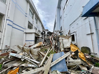 また、校舎の棟と棟の間には、引き波で流されてきた車やボートなどが引っかかって折り重なっていた。