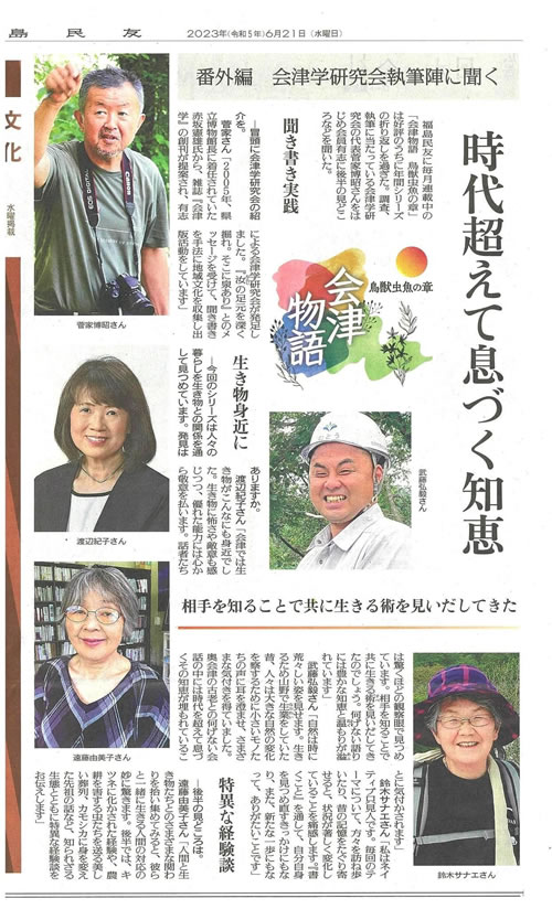 【2023/6/26】 「会津物語」 「会津物語」 。 動物や樹木などの、人間以外の生き物に対して人間がとても近く、対等の眼線であり、ひとつひとつの物語に、実在の話者と体験者がいることがユニークと感じている。 「鳥獣虫魚の章」 読んでみたい!