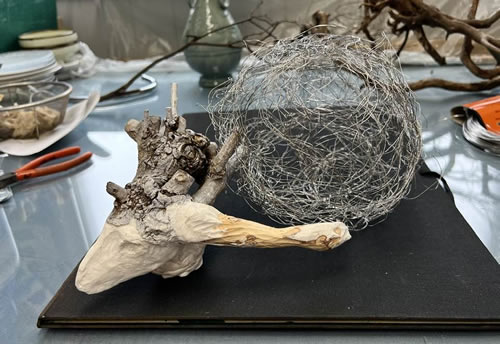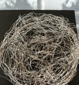 山本裕子展(ギャラリー檜)、中川猛展(SPC)、歳森勲展(space23℃)、庄司朝美展(gallery21yo-j)、大小島真木展の展示とクロストーク(調布市文化会館たづくり)、近藤昌美展(Tokyo Art Museum)。ほか。 方向音痴なので、スマホ頼りにかなり歩いた。 作品を実見して作家やギャラリーの人と会話する機会は貴重。もっとつくりたい。 【2023/11/12】 「針金の球体」 銀座のギャラリー檜さんからお誘いを頂いて、12月のグループ展に1点出品することにした。来年5月に個展をするので、その予告お知らせも兼ねようと思う。 今年の秋の出版をめざしていた私の作品集は、案の定、準備作業にはまだまだ時間がかかりそう。。なんとか進めようと毎日パソコン作業なので、制作タイムをはさむことでリフレッシュ。 木製のオブジェと組み合わせるため、ステンレス針金で球体をつくっている。地球、細胞、時の抽象化などをイメージしながら。