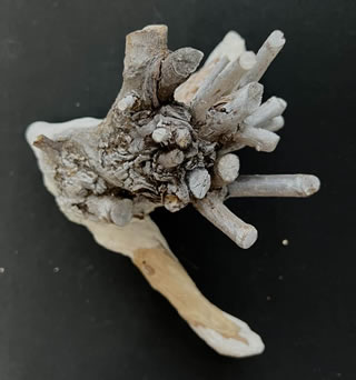 インスタレーションの要素としてつくる針金製のオブジェは、これまでにもいくつもあって、気に入っているマテリアルだ。 ・木の根 (2014) http://maruyamayoshiko.com/artwork/2014/2014realm/ 針金を絡めていくとひとりでに球体が引き締まって小さくなってしまうので、もっと大きくしようと多方向に引っ張ってみる。すると、伸びるところと引き換えに、針金が交錯しているところは一層もつれが引き締っていく。 地球上の複雑な事情を持つ地域が、さらにしわ寄せを被って混迷を極め、容易に解決しえないことを、手の中の針金の球体に想起した。 木のコブの部分は時間の積層を感じさせておもしろい表情があるので、いつもの庭木の剪定では保管しておく。 今回はそれに石粉粘土で生き物の形を加えようとしている。ただいま制作続行中。