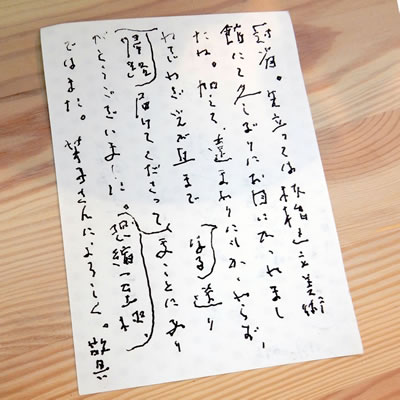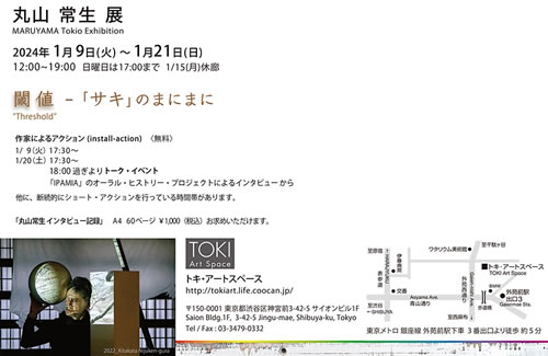 【2024/1/14】 「福住氏の訃報」 丸山常生展が始まって、私は初日の「アクション」で写真撮影を手伝った。 その2日前に、美術手帖の元編集長の福住治夫さんが亡くなられたため、アクション終了後に、常生が弔意とともに福住さんから頂いたお葉書を紹介していた。 福住さんとは、同じく板橋区在住の、美術に専念する者として、お付き合いをしていただき、福住さんの球場予約による草野球大会では、年齢や立場を越えて、健康的で気さくなひとときを楽しんだこともあったっけ。私の個展にも、晩年にはちょっと脚を引きずりながらも来てくださった。 その昔、結婚して作家名も丸山に替えて個展をした私に、「どうして替えるの?」と不満そうだった。女性ではなく男性の、壮年となられた当時の福住さんが、そのような平等意識を持っていてくださることが、嬉しかったのを思い出す。 先日、上映が終わってしまわないうちにと「PERFECT DAYS」を見てきた。老境に入りつつある主人公の、淡々と繰り返される日々の中にある、ささやかな喜び。表現や観察や継続することの。 これらのひとつひとつが、ささやかに見えて実はとても深いことなのだと、見終わって反芻しながら気づく。福住さんとの思い出にも、連れ合いの展示やアクションのなかにも、それはあったと思う。