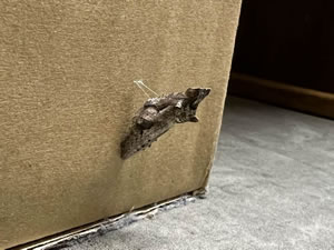 ある日、一番成長の早い青虫が忽然といなくなった。蛹になる場所を探して旅に出たらしい。まだ早いと思っていたのに。。。一体どこへもぐりこんだのやら。 うっかり潰さないように、物を動かす時には慎重になる。 5日ぐらい経っただろうか。ジムにいくために机の下のリュックを取ろうとしたら-- なんと、私が毎日デスクワークしている真下の、蹴飛ばしそうな位置で蛹になっていた! 無事でいられて、なんて運が良い蛹だこと。 そうっと端の方に移動させ、厚紙でガードをつくった。 あと数日したら、ここから蝶が飛び立つはず!