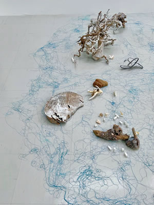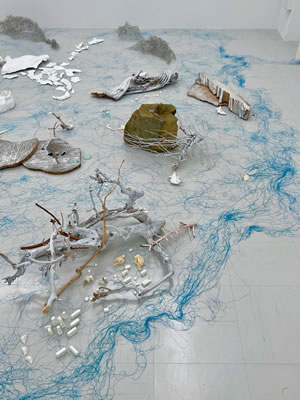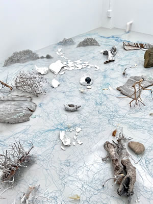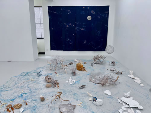 ・・・・・・・・・・・・・・・・・・ 2024.6.24(mon.)—7.6(sat.) ギャラリー檜 e・F / Gallery HINOKI e&F 〒104-0031 【2023/7/2】 「Written on Water」 個展が2週目に入りました。 ようやく梅雨らしくなり、私にとっては現実の雨と作品の共振を期待したいところです。 おいでになる方には、うっとうしい雨かもしれませんが、どうぞ足元に気をつけながらお出かけください。 雨を媒介にして、宇宙空間とのつながりや、地表に生きているヒトとあらゆる他者へ、意識を向けたいと思います。