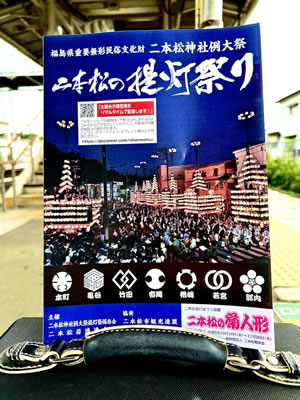 【2024/10/5】 「二本松提灯祭り」 今日から3日間の祭りが始まる。 ふるさと二本松市の提灯祭りは、日本三大提灯祭のひとつ。 昨夜は、聞こえてくる太鼓の音にしみじみと聴き入った。 母のサポートで帰省して、一緒に祭りを楽しみたかったが、祭りの今日、去るのはとても残念。 駅で見つけたパンフレットをみて我慢する。 来年こそ!