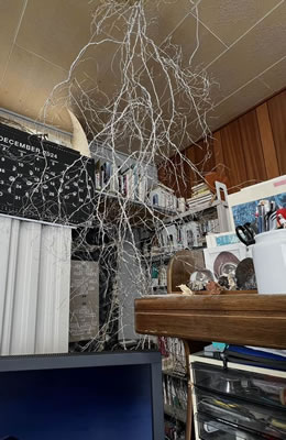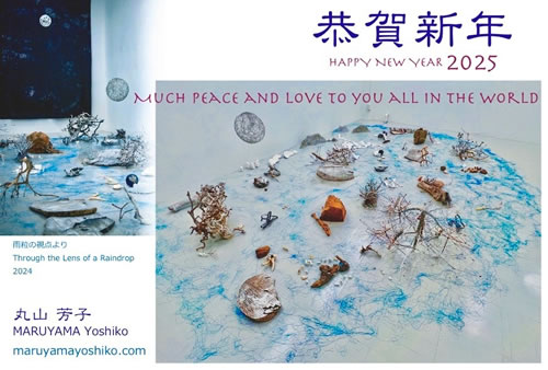 紅茶の液にニンニク、生姜、ワイン、コンソメ、スパイスを加えて、じっくり煮るだけ。豚肉の脂肪が除かれる上に、ポリフェノール効果も。スライスして、いろんな食べ方が楽しめる。 庭で採れた柚子は、20個ほどジャムにした。皮のみじん切りを省略してざく切りで煮たら、皮が溶けなかったのが残念。 でも、皮をかみしめると柚子の香りが残っていて、おいしい。 【2025/1/1】 表現者の人生に仕事納めなし 表現者の人生には停年なし、暮れの仕事納めもなし。 だから今日も、年の区切りの片付けと正月準備と制作をミックスでやっている。 来年は3月末に作品集出版、6月に東京で個展、10月に福島と東京で「精神の〈北〉へ」プロジェクト展を控えていて、初めから終わりまで忙しくなりそうだ。 それで、自分の作品は早めに作っておこうと、私の部屋は今こんなものが3つぶら下がっており、もっと増えていきそうであり、歩きながら引っかからないように要注意。 みなさまの2025年が、充実したものになりますように。 【2025/1/2】 新年のご挨拶 新年あけましておめでとうございます。 Happy New Year 2025 !