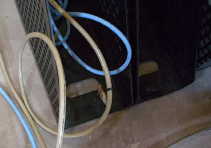 【2013/5/22】 連日PC作業に明け暮れている。この冬に喜多方で実施した活動の記録集の編集作業だ。 たまには掃除を…と思い、ディスプレイ台の下に置いた箱の中のホコリを除くため中のものを出したら、揺れる小さなものが…。 忽然と姿を消したアゲハ青虫がこんなところでサナギになっていた! サンショウの葉からここまでは、棚を下り、結構な距離の床を這わなければならない。 そして私が最も頻繁に歩いているところを横断し!段ボール箱をよじ上り、中に降りて、このケーブルを伝って上らなければならない。 その長旅を想像すると、いやはやご苦労さん!無事でよかったね、とねぎらいたくなった。 普通なら黄緑色のサナギが、暗がりだったせいなのかこんなに茶色で、蝶の色はどんなになるのだろう?また楽しみになった。