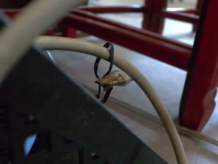PCとプリンターをつなぐケーブルの下に揺れるものが…