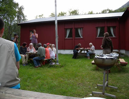 ほとんどが北欧からの参加者なので、私自身のプロジェクトのための<北>リサーチにはもってこいの環境です。 もっともっとインターナショナルな展にしたいというオーガナイザー・アーネさんにとって、アジアからの私や夫・常生の参加を期待しているようです。 作家が到着した翌日には、このエリアを知るため、ややハードなハイキングをして、丘からの展望を満喫しました。 ※右の背景画像(Roghieh Asgari Torvundさんによる丸山夫妻らの写真)⇒ 昨夜は、夕食後にアートプレゼンテーション。 互いの活動を知り、さらに密なコミュニケーションが始まっています。 ネット環境がやや不自由なため、節目節目に紹介できれば…と思います。