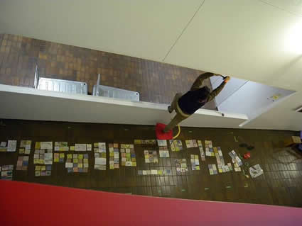 【2013/11/10】 「ギャップ・ダイナミクス」展、準備中。 金沢寿美さん。3.11は、中学生だったときに起きた阪神大震災をとらえ直すきっかけになったという。 広いホールが彼女の個人的な記憶のシーンに変わりつつあります。