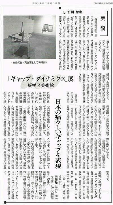 新かながわに、現在、板橋区立美術館で開催中のギャップダイナミクスの展評が掲載されました。 とても素晴らしい展覧会です。是非とも足を運んで下さい。宜しくお願い致します。(宮田