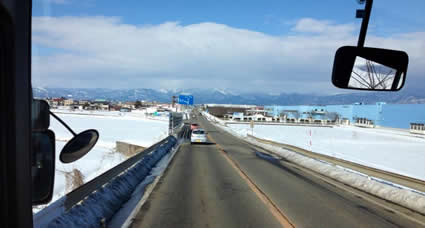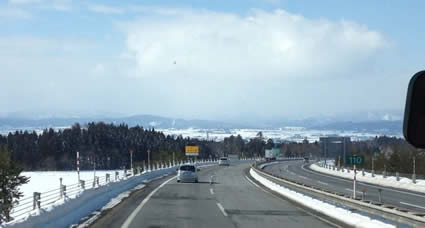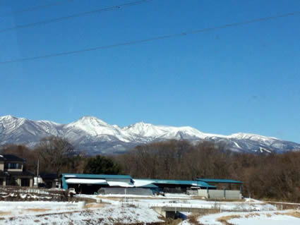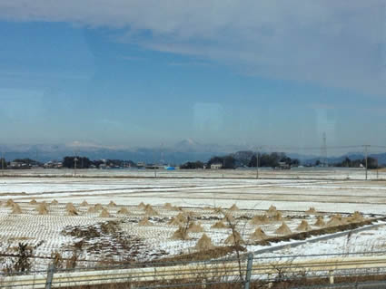 【2014/2/11】 会津へ 周囲はみんな山。盆地のいいところ。 今年は雪が少ないらしい。