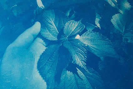 昭和村の夏、カラムシの葉に触れる(作品の部分です) (写真&コメント:千葉奈穂子)