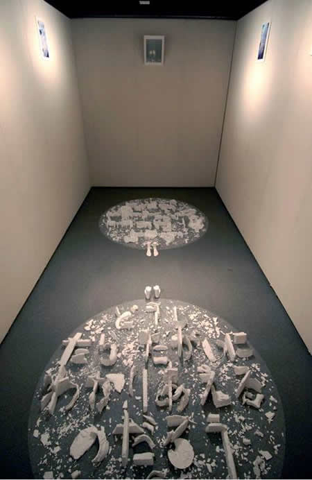 ご紹介するのは、スウェーデンのアーティストBodil Halvarsonさん。 ノルウェイの国際野外展KUNST I NATURE 2011で出会い、本人も作品も浮世離れした魅力がありました。 これを機会に、作品をもっと知りたいと思います。 “The 5 Day Art Challenge on Facebook” The second day, I show you my work Terrestrial Tapestry. It’s a series of works, I change the languages depends on the work. Terrestrial Tapestry, 2008, Itabashi Art Museum, Tokyo The view from the sky shows us various colors and textures like tapestries. When we dive down, we see two lands those were destroyed by attack each other. The ruins are composed by 2 different languages meaning “how can we understand each other?”. The difference between human beings in the world is as subtle as the distribution of fragments in the composition of words. Today, I nominate Bodil Halvarson. I met her in KUNST I NATURE 2011, she participated in it from Sweden. I'd like to know her works more!