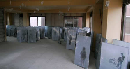かつて「安全な国」と言われた日本も今や、周囲の人が信用できるのか判別できないグレイの人の海が広がる。 このなかにテロリストがいるが、怪しいのはどの人? その答えには、人の持つ先入観と偏見が現れる。 “The 5 Day Art Challenge on Facebook” The Gray Sea 2008, Nishikawaguchi Project, a closed cabaret, Kawaguchi, Saitama The 3rd day, I show you my work installed at a closed cabaret, including the sight of the town. I expressed the crowd in gray color, it means we can't distinguish who is suspicious. The audiences notice their prejudices when they try to distinguish terrorists among this gray crowd.