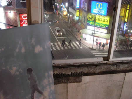 【2015/3/23】The 5 Day Art Challenge on Facebook 3日目は、外国人の集住地にて、風俗店が撤退した空き店舗に設置した作品。 窓から見える街も作品に取り込む。 人の波が寄せては返す都会の雑踏。