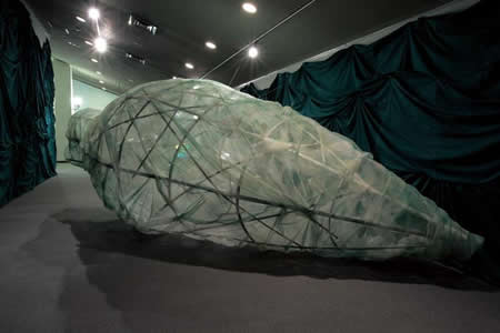 “The 5 Day Art Challenge on Facebook” The 5th day, I show you my work in the exhibition that I directed it as the commissioner with my husband Tokio Maruyama. The Pupa Stage 2013, Contemporary Art Festival in Itabashi Art Museum, Tokyo The metamorphosis of swallowtail was full of surprises and mysteries. The most mysterious was the pupa stage. In order for a pupa to be reborn into a butterfly, the cells of its inner body must simultaneously undergo death and creation; that is, a pupa undergoes a drastic transition by reducing its larval body to pulp. I superimposed mankind’s present state that is striving to change in the post March11 world with the small form of life that regenerates itself by overcoming the near-death pupa stage.