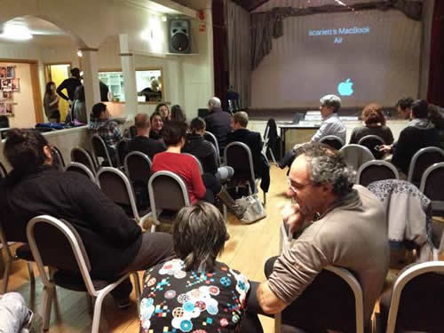 art presentation site, it was a movie theater before. すべての参加者が自分の活動のプレゼンをする。