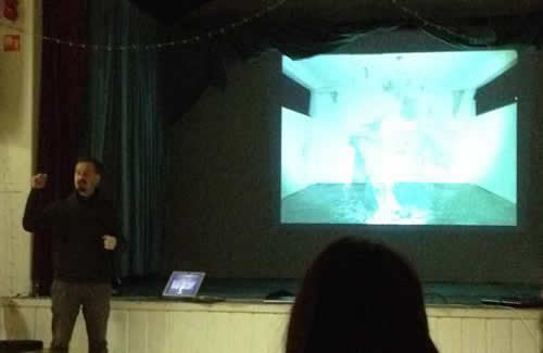 art presentatipon 先日の大晦日パーティー。 Fresh Windsのディレクターであるアーティストミレヤが挨拶。50人もの多様な表現の参加アーティストをよくリードし、対応している力量は見事だ。 本人の人間的魅力が、多くの参加者の協力的な雰囲気を引き出しているのかもしれない。 500人の人口の町に、アーティスト50人が小さな村のように生まれて、有機的な活動を生み出している。 連夜のアーティストによるプレゼンテーションは、互いの表現ばかりでなく、キャラクターも理解することができ、より親しみがわく。 英語による表現はネーティブでない者にとってハードルがあるが、プレゼンターが言葉を探すと、観客であるアーティト達が即座にフォローする関係はとても暖かく、その場を共につくっている仲間なんだと感じる。