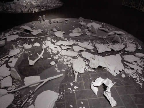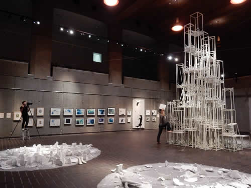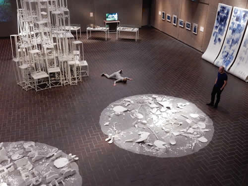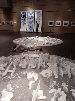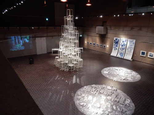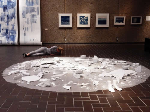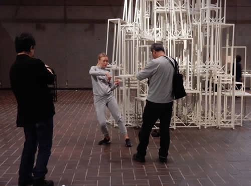 本日11日14:00~15:30 丸山常生(アートパフォーマンス)とアマンダ・ビルバリ(ダンス)の公演があります! 展覧会と合わせて、ぜひご覧下さい。 写真は、公演日以外にも断続的に行なうことになるアマンダのアクション(初日9日の様子)。 (※以下、撮影:平方正昭氏 右の背景画像も)⇒