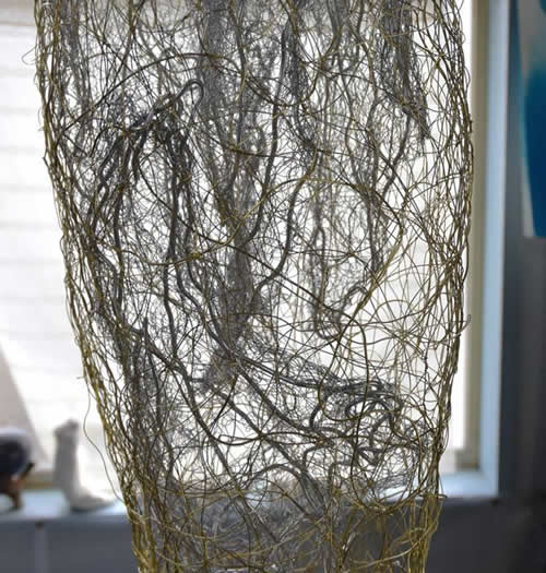 【2017/11/4】 サナギ インスタレーションの一部にする予定のサナギを制作中。 I'm making a pupa for my installation work. (※右の背景画像「サナギから飛び立つ蝶に東北の人々を重ねて」)⇒ 3.11の後、数年間に渡ってアゲハの変態プロセスを観察し続けたことがあった。 気の遠くなる未来まで及ぶ原発事故の影響に動揺する人間を尻目に、粛々とダイナミックな変容をみせた小さな姿には、大きな自然のサイクルの中でアゲハも私たちも生きているんだということを、アゲハのプロセスを観ながら実感し、教えられた。 そのプロセスのなかでサナギの期間は、青虫から蝶へと生まれ変わる最もミラクルな行程だと思う。 ツタンカーメン王の棺に似た姿で10日ぐらいの間死んだように動かず、まるで瞑想するようだけれど、その内部では青虫の体をどろどろに解体し、細胞の死と生成とを同時に行なっている。 私は、その「再生に向かう密やかな準備」の状態に興味を覚えた。3.11以前の意識や社会を変えようと、困難から復活しようと、努力する人々が重なって見え、いくつかの作品にしてきた。