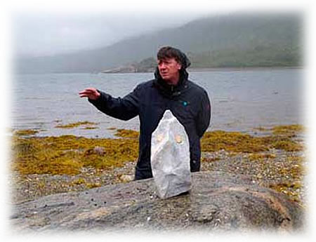 メッテ・カミラは、地層が見える岩盤を覆う土壌の一部(上の切り込んだ部分)をはぎ取り、地層のラインと呼応させた行為が、シンプルで力強い。
