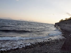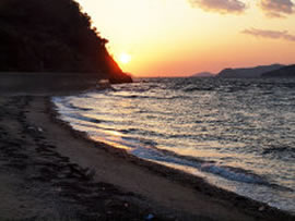 夕日が沈んでしまう前に この島を 離れなければなりません 迎えの舟が そろそろ 到着する頃 遅れたら 島に宿泊・・ ということになりますから